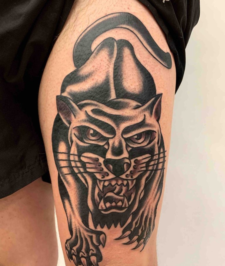 Traditional Tattoo artist Mariano reinventing Tony Polito's classic design of a panther